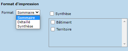 Le format synthèse présente un résumé des informations selon des critères précis. La liste des occupants permet de choisir les synthèses suivantes :