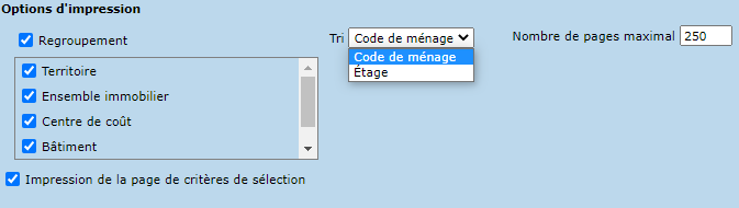 Tous les formats permettent de définir le nombre de pages maximal pour la liste. De plus, il est possible d'imprimer ou non la page des critères de sélection.