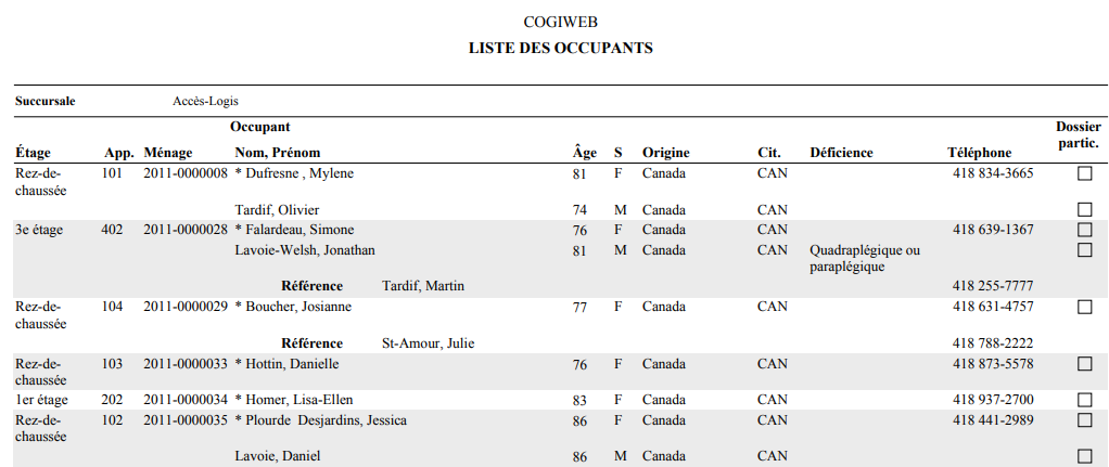 <Accueil » Ménage » Listes » Liste des occupants